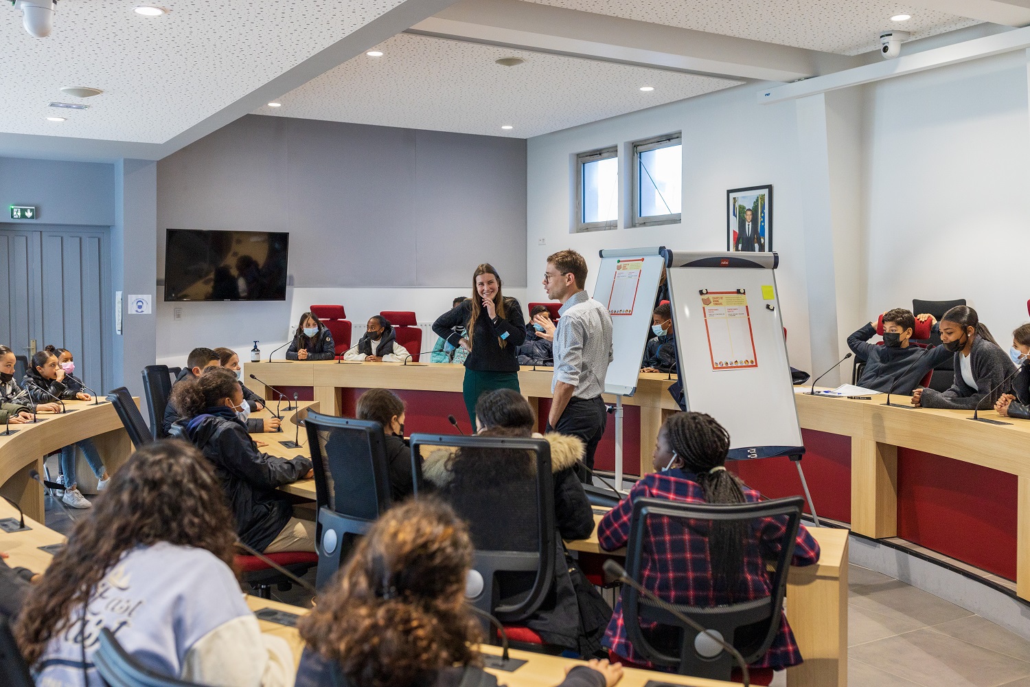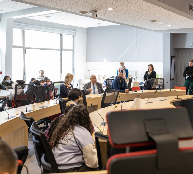 Après un petit-déjeuner offert et sous l'oeil des équipes municipales et des encadrants, les jeunes ont pu découvrir l'ensemble des activités, ateliers et voyages prévus dans le cadre du programme. Cette prise de contact a eu lieu en salle Simone Signoret, déjà connue par un grand nombre d'entre eux. Les participant.e.s, très motivé.e.s par le projet, se sont ensuite rendu.e.s dans la Salle du Conseil Municipal où ils ont eu le plaisir de rencontrer Monsieur Le Maire et de lui poser toutes leurs questions. Cet échange a permis d'aborder le rôle du Maire et du Conseil Municipal ainsi que les différents projets qui sont en cours sur le territoire cenonnais.
