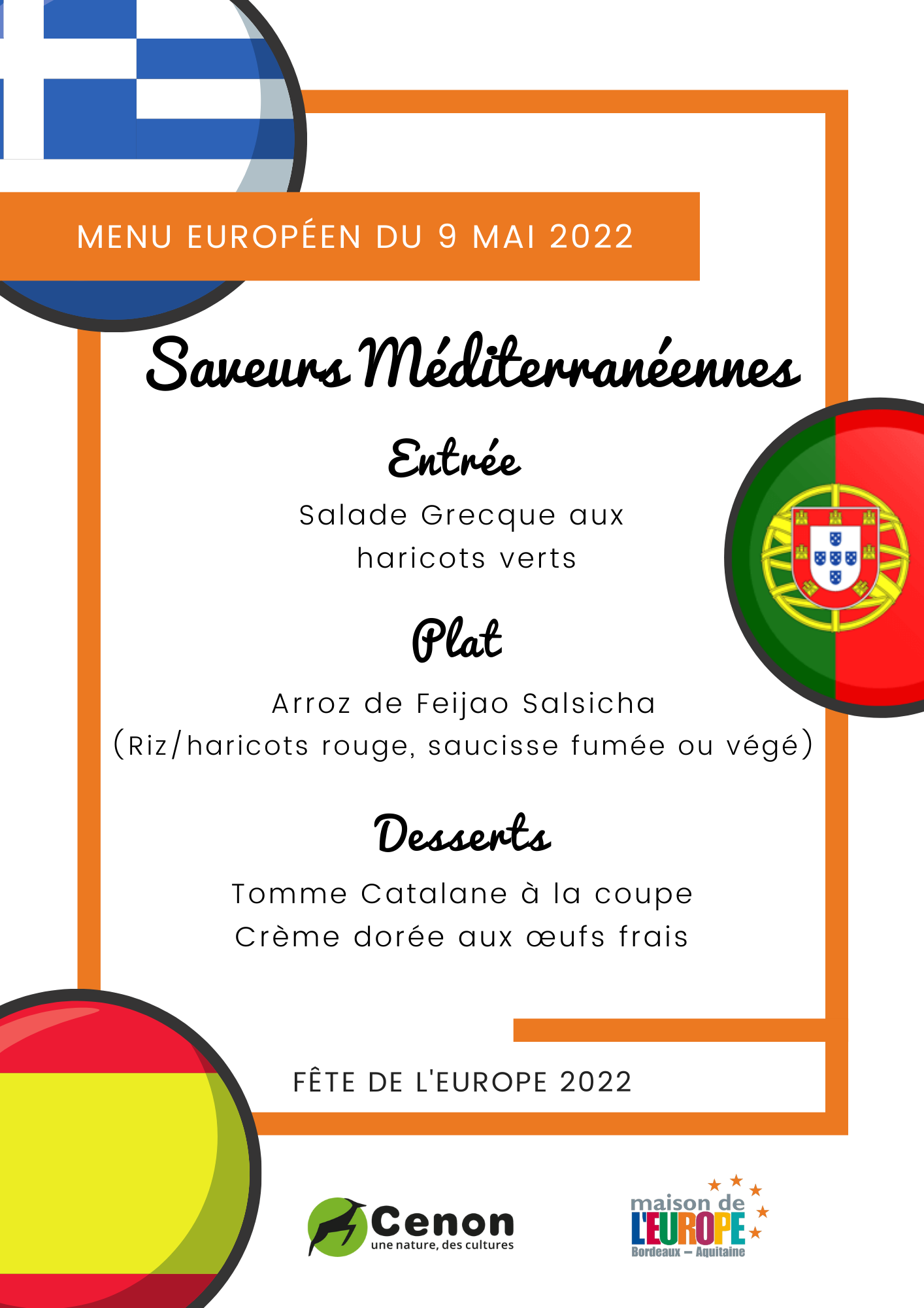Le lundi 9 mai, date de la journée de l'Europe, les enfants des écoles de Cenon, ont pu profiter d'un repas européen, composé :