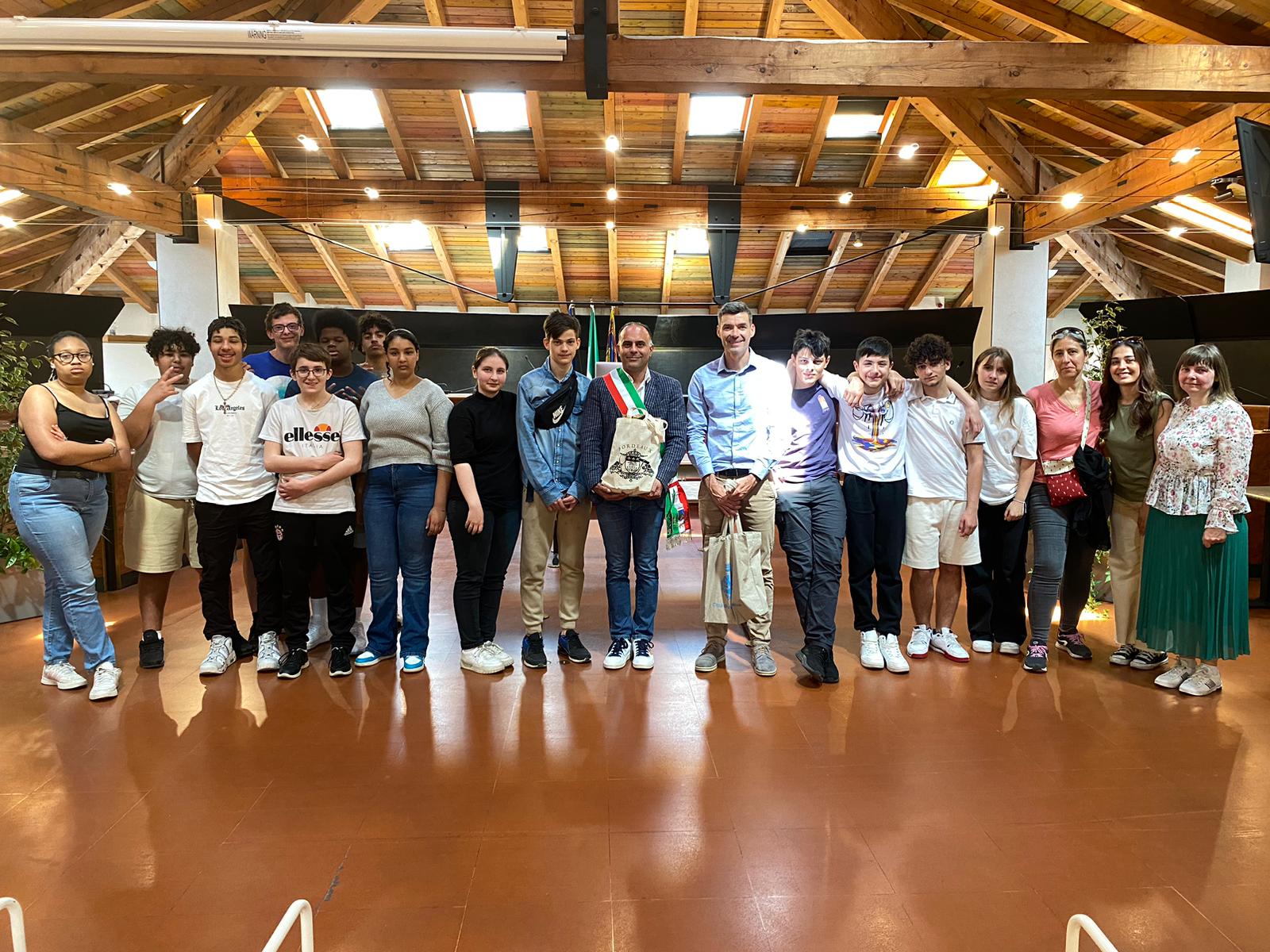 Le maire de Montebelluna a accueilli les élèves au conseil municipal, exprimant en anglais son plaisir de recevoir des jeunes étrangers et les a encouragés à participer à la vie citoyenne et à continuer les mobilités, rappelant l’importance de l’histoire et de la fraternité entre les pays.