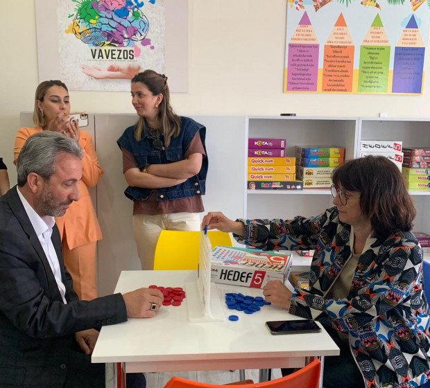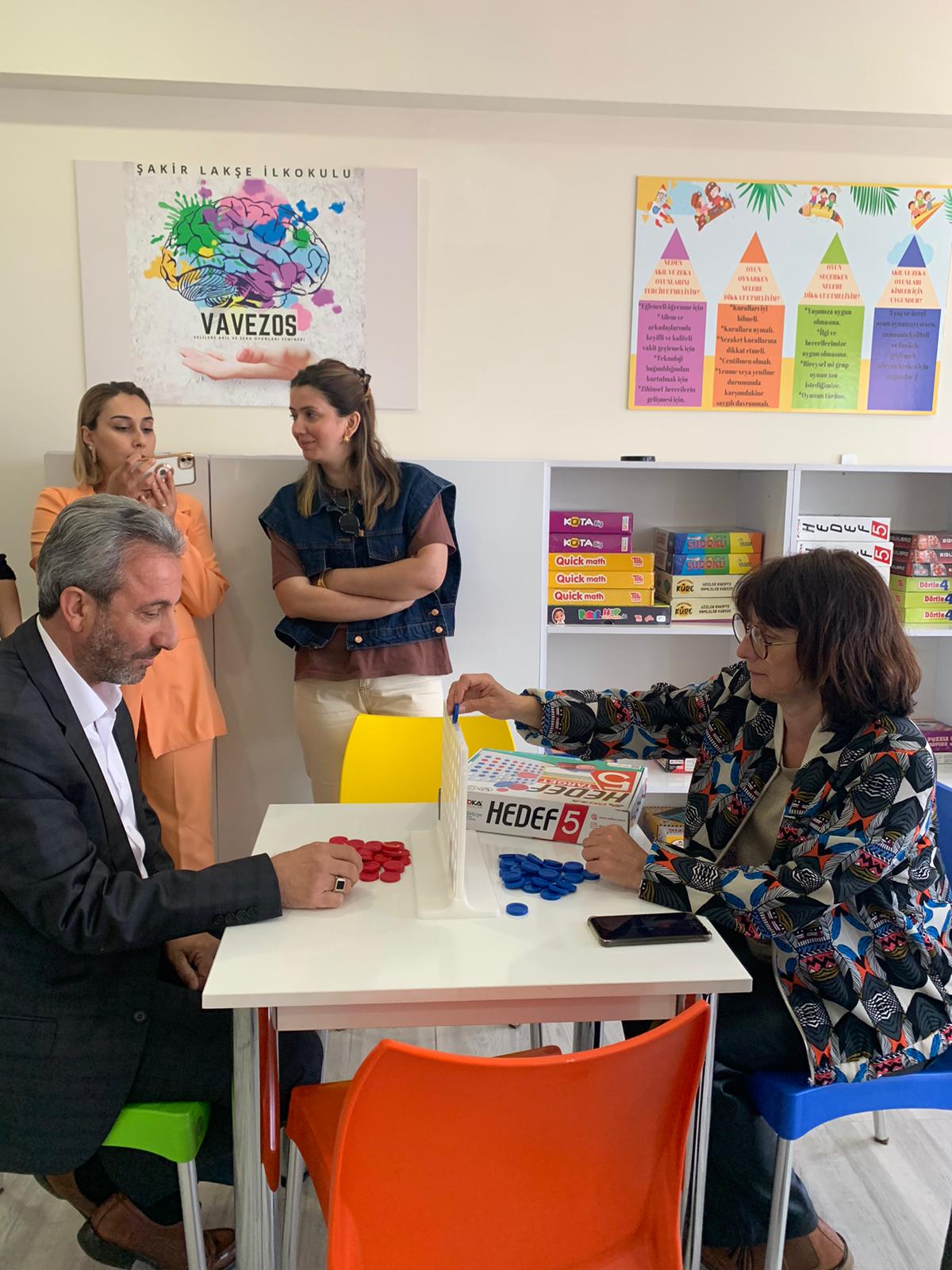 Le projet “Vavezos” leur a été présenté, un programme national visant à lutter contre l’addiction aux écrans et développer la pratique des jeux au sein de la famille. Chaque enseignant consacre 1 heure par semaine à la ludothèque, une salle spécialement aménagée au sein de l’école. Les élèves qui le souhaitent ont la possibilité d’emprunter des jeux pour les ramener chez eux et y jouer en famille, renforçant ainsi les liens familiaux et limitant le temps passé devant les écrans.