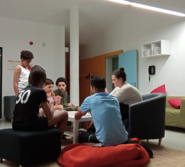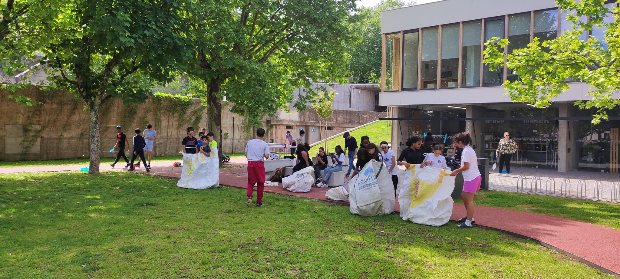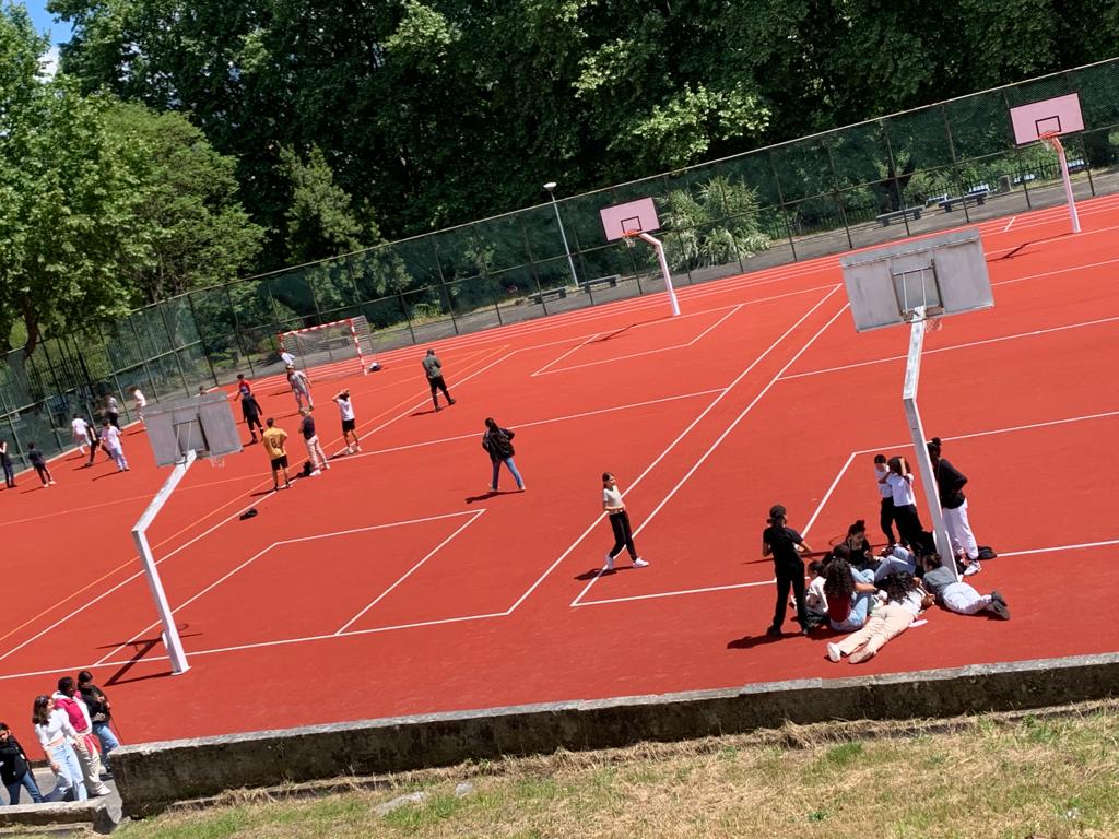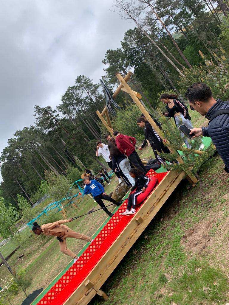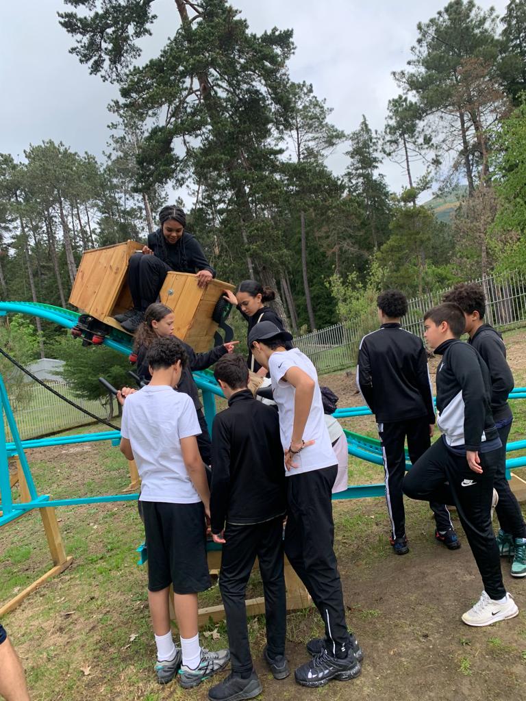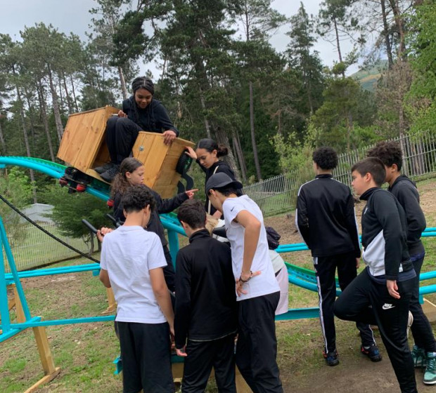 Les jeunes ont passé la matinée sur l'aire de jeux pour être en extérieur et travailler sur la cohésion de groupe et la collaboration (ping-pong, courses en sacs, tir à la corde).