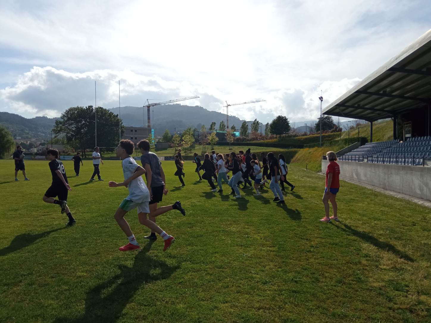 Après un retour rapide à l'hôtel pour la prise des chambres, les jeunes ont pu se préparer pour l'initiation au rugby. L'initiation au rugby a été animée par les éducateurs sportifs du CRAV (Clube de Rugby Arcos de Valdevez) dont Filipe Machado, professeur partenaire d'Arcos, et s'est très bien déroulée. Cette initiation a permis aux jeunes la découverte d'un autre sport, différent du football, et a donné lieu à des conversations en langues étrangères.