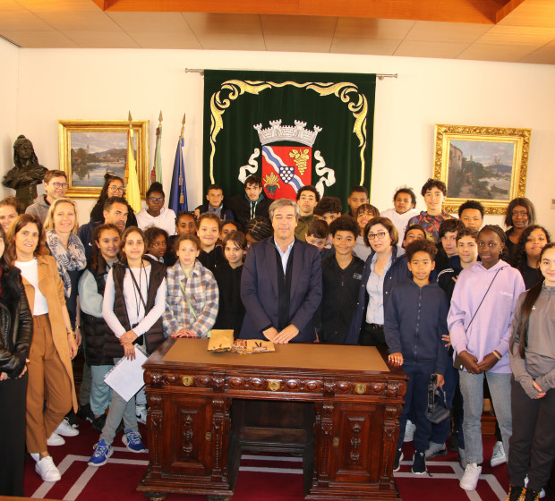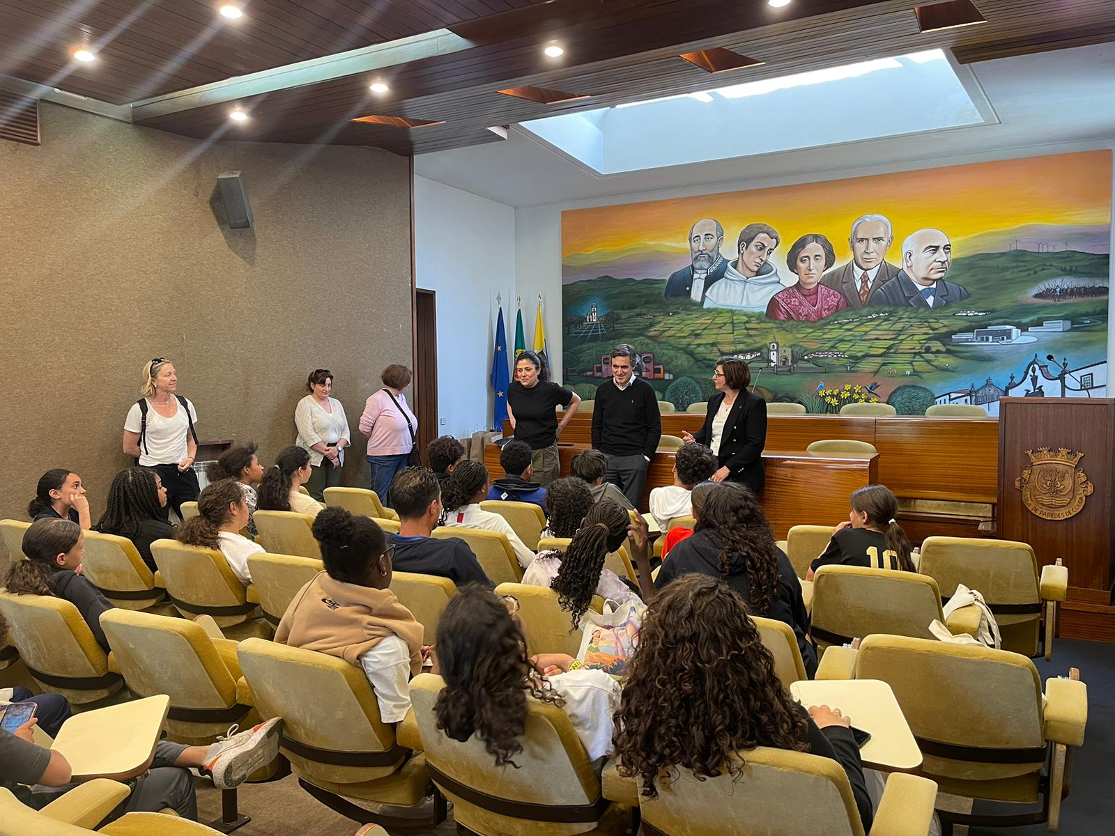 En début d'après-midi, les participant.es et encadrant.es ont été reçu.es par le maire de Paredes de Coura, Vitor Pereira, qui leur a rappelé l'importance d'étudier et leur a offert des tee-shirt à l'effigie de la ville.