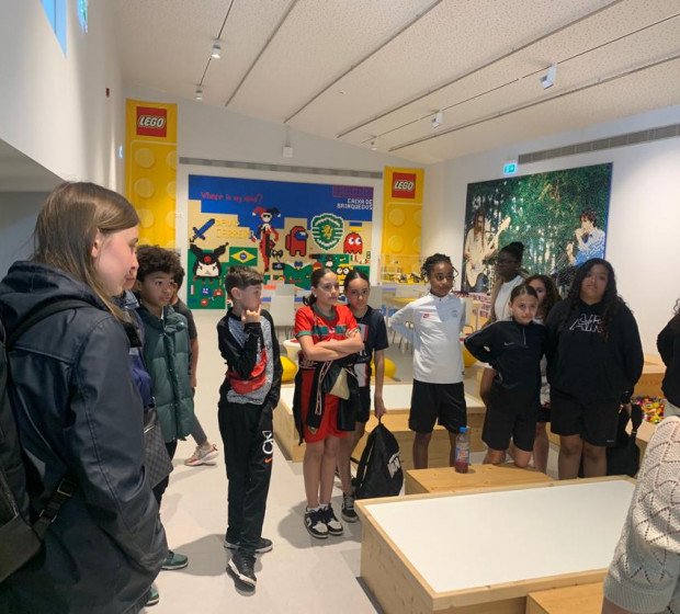 Pour cette première matinée dans la nouvelle ville, le groupe a, de nouveau, été scindé en deux. Une première partie du groupe a suivi des ateliers de LEGO avec une partie pratique (construction d'une maison en 5 minutes, construction d'un pont par équipe, avec différentes contraintes), et avec une visite des lieux et des collections privées. Pendant ce temps, l'autre partie du groupe réalisait, dans des infrastructures partenaires de la Mairie, des objets personnalisés (tote bag, porte-clé, pins). Chaque groupe a fait les deux ateliers avant de partir au restaurant.