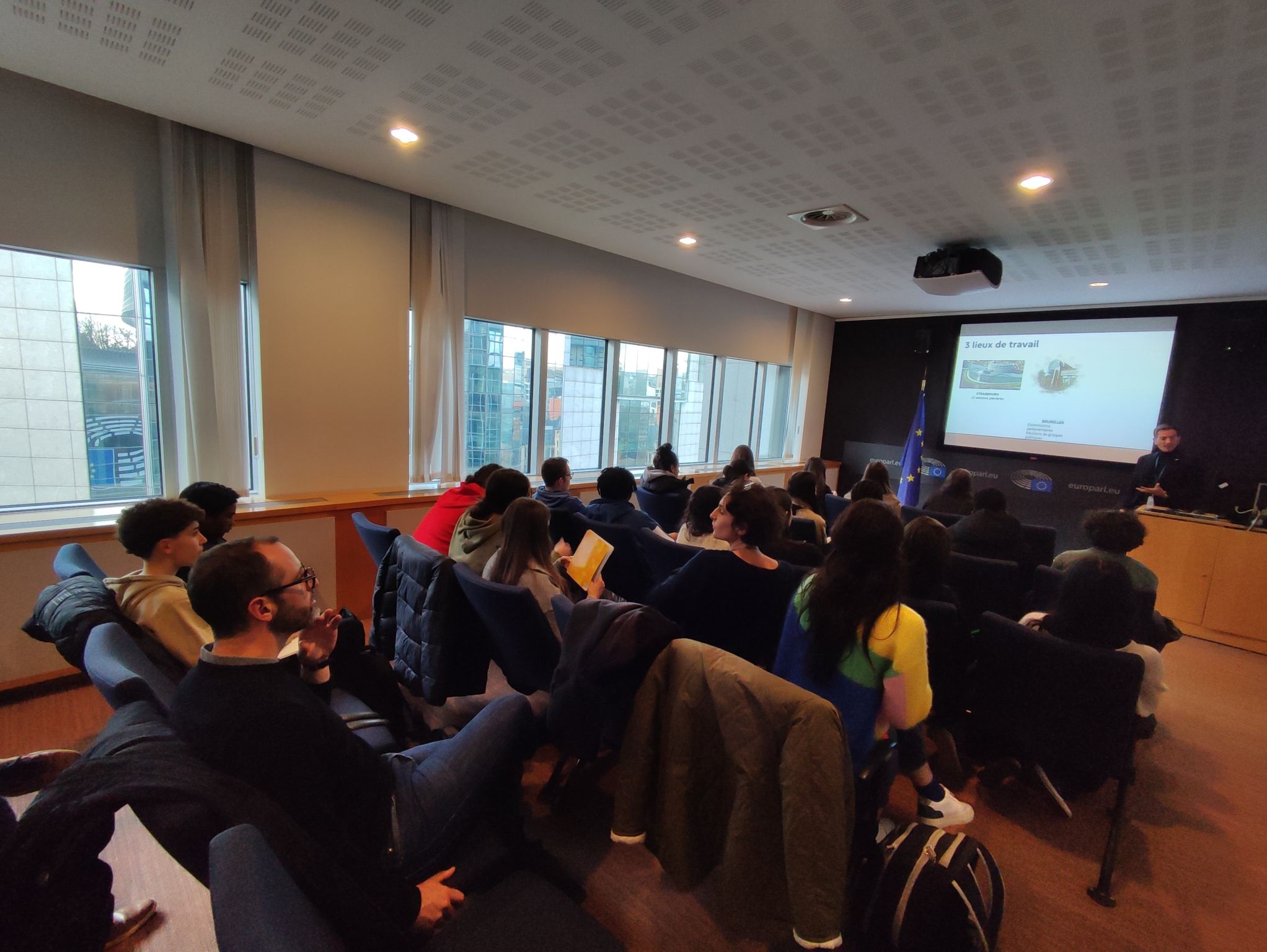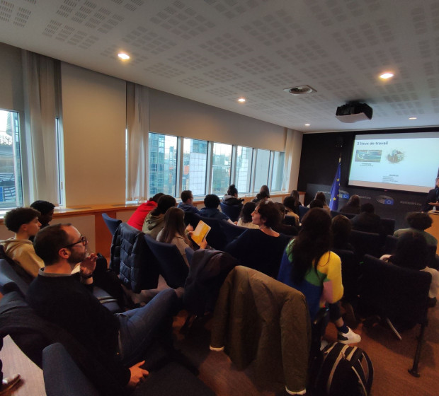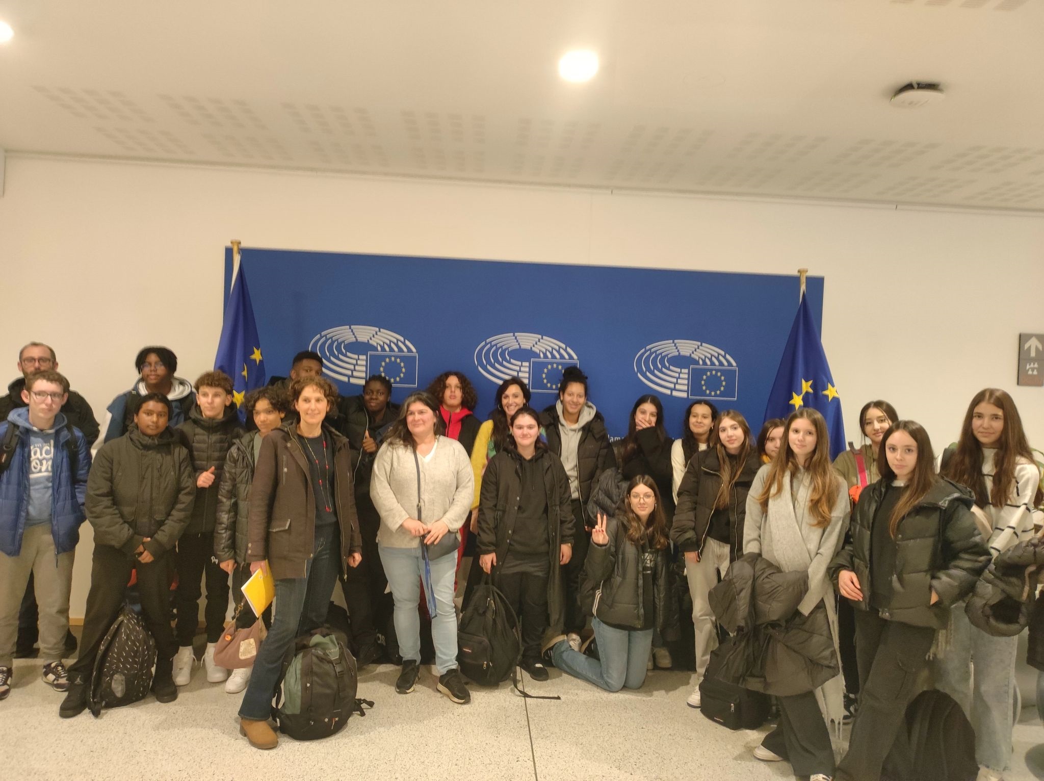 Accompagnés par trois professeurs d'histoire-géographie, une vingtaine d'élèves du Collège Jean Jaurès se sont rendus à Bruxelles pour visiter le Parlement Européen, du 29 au 30 novembre 2023, sous le parrainage de Madame la Députée Aurore Lalucq.